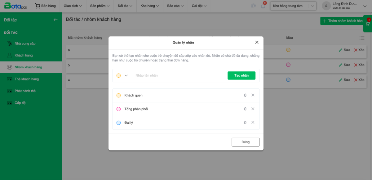 Botapos hỗ trợ tính năng để bạn có thể thiết lập được nhóm khách hàng như nhóm CTV, nhóm khách hàng bán lẻ, nhóm khách hàng VIP. Giúp cho bạn thuận tiện trong việc áp dụng chính sách giá, marketing … cho từng nhóm khách hàng.