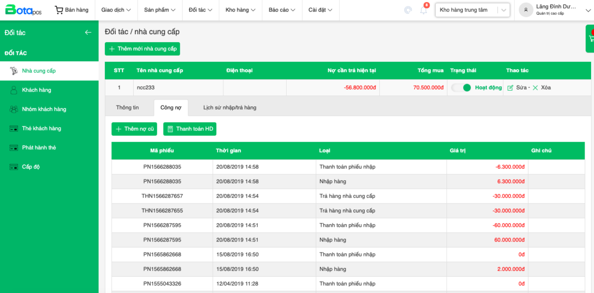 - Thêm mới nhà cung cấp trực tiếp trên Botapos
