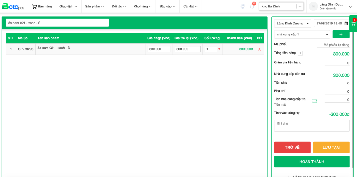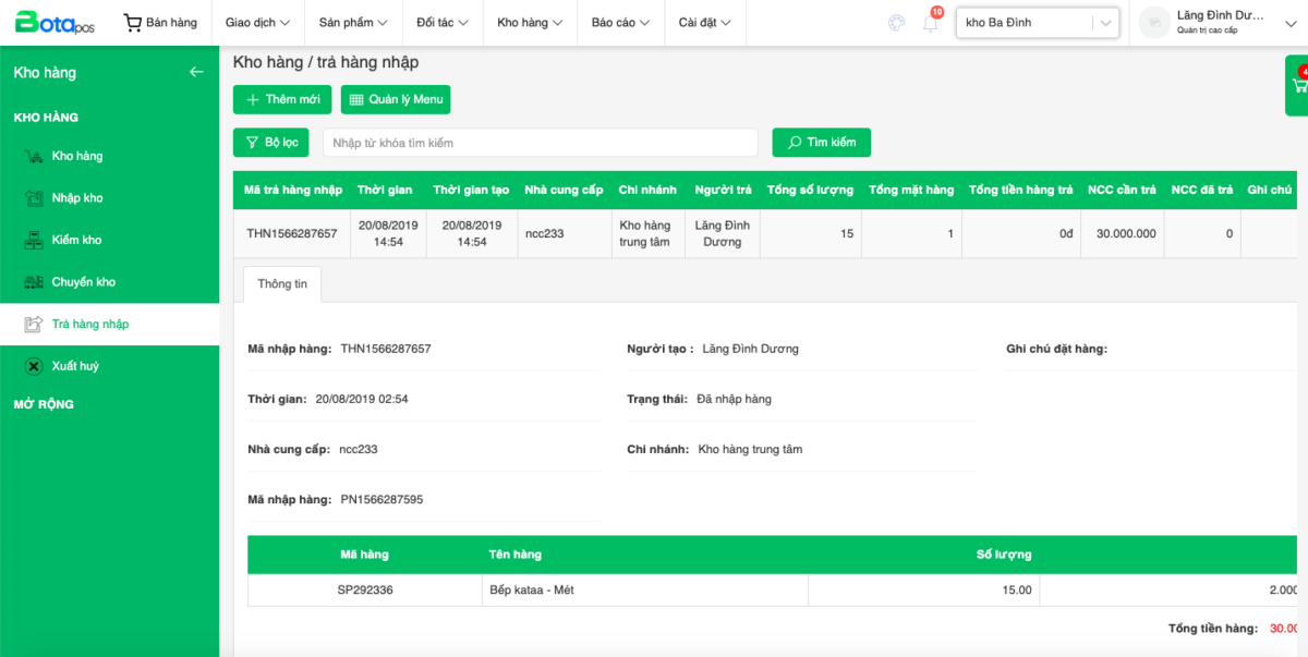 Trả hàng cho nhà cung cấp | Bota - Giải pháp quản lý và bán hàng đa kênh toàn diện